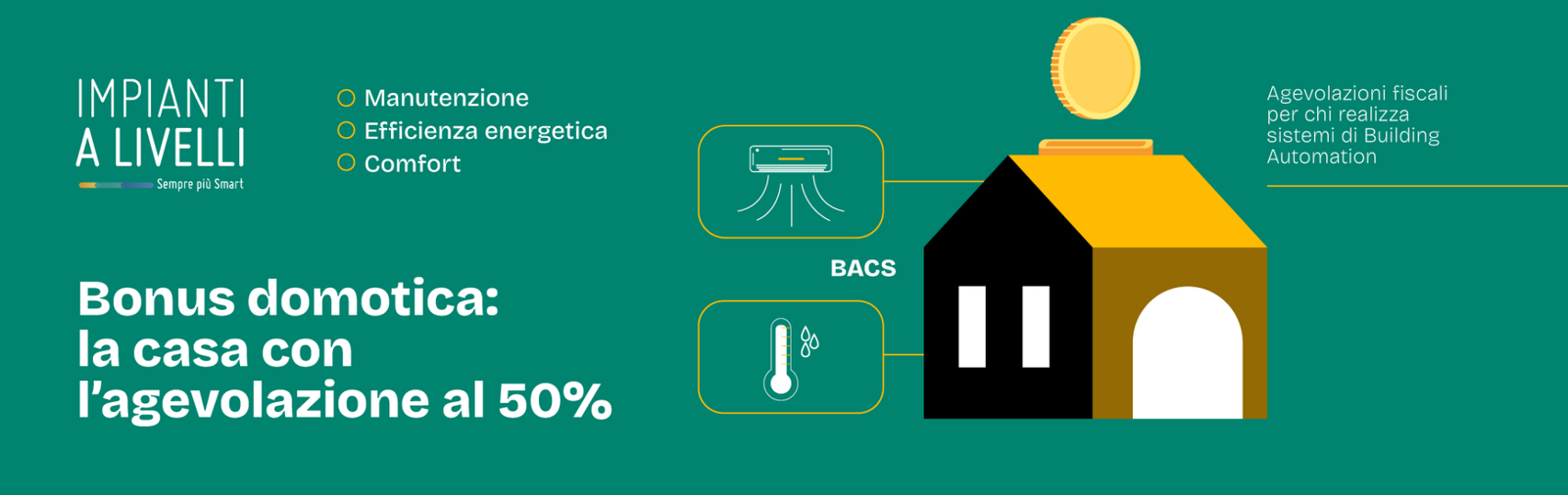 Ecco un dato fornito dal Politecnico di Milano ed Eucac.org e che parla da solo: il ROI (Return of Investment) medio di un impianto BACS si aggira attorno ai tre anni*, ma con l’agevolazione fiscale del 50% valida per tutto il 2025, un utente medio potrebbe iniziare a “guadagnare” dopo soli 18 mesi. Meno di due anni per iniziare a vedere i frutti dell’investimento, senza stravolgimenti strutturali dell’immobile.