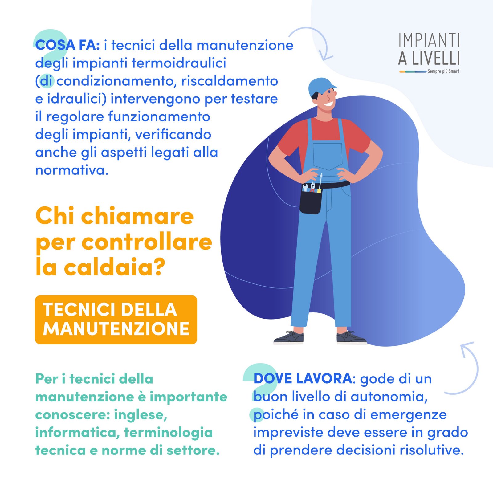 Oggi parliamo dei tecnici della manutenzione, ovvero quei professionisti che si occupano di controllare gli impianti termoidraulici (di condizionamento, riscaldamento e idraulici).