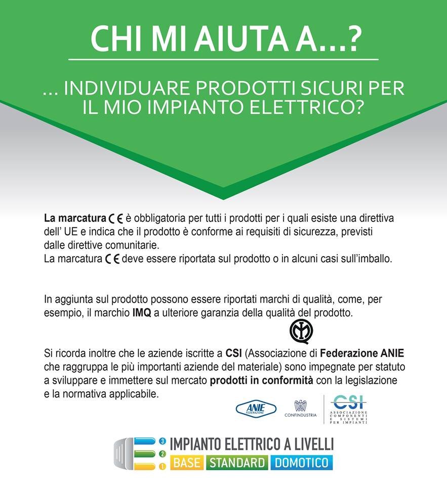 Si ricorda inoltre che le aziende iscritte a CSI (Associazione di Federazione ANIE che raggruppa le più importanti aziende del materiale) sono impegnate per statuto a sviluppare e immettere sul mercato prodotti in conformità con la legislazione e la normativa applicabile.
