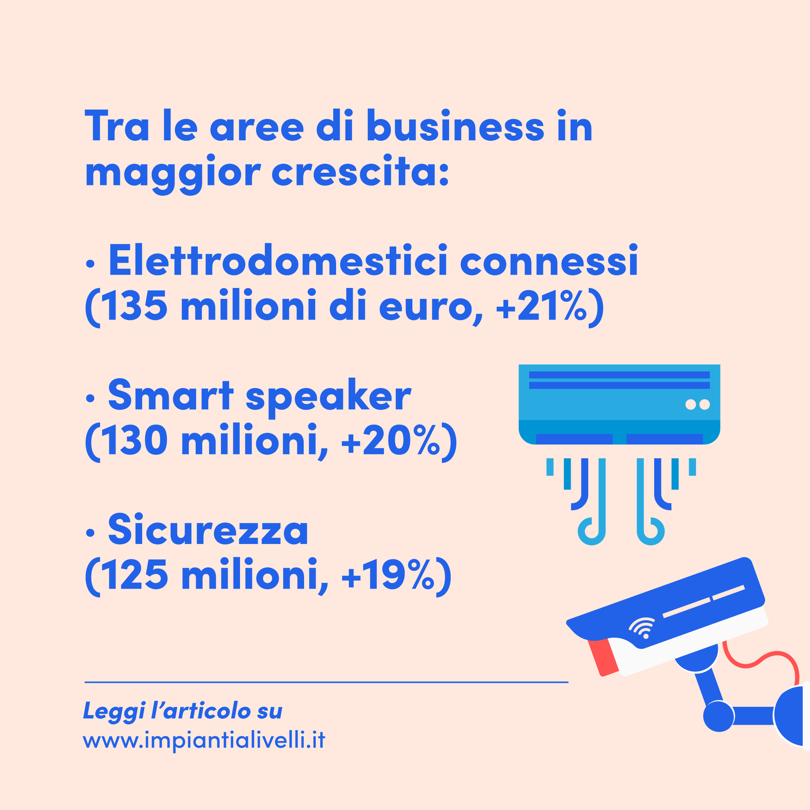 +21%), gli smart speaker (130 milioni, +20%) e la sicurezza (125 milioni, +19%).