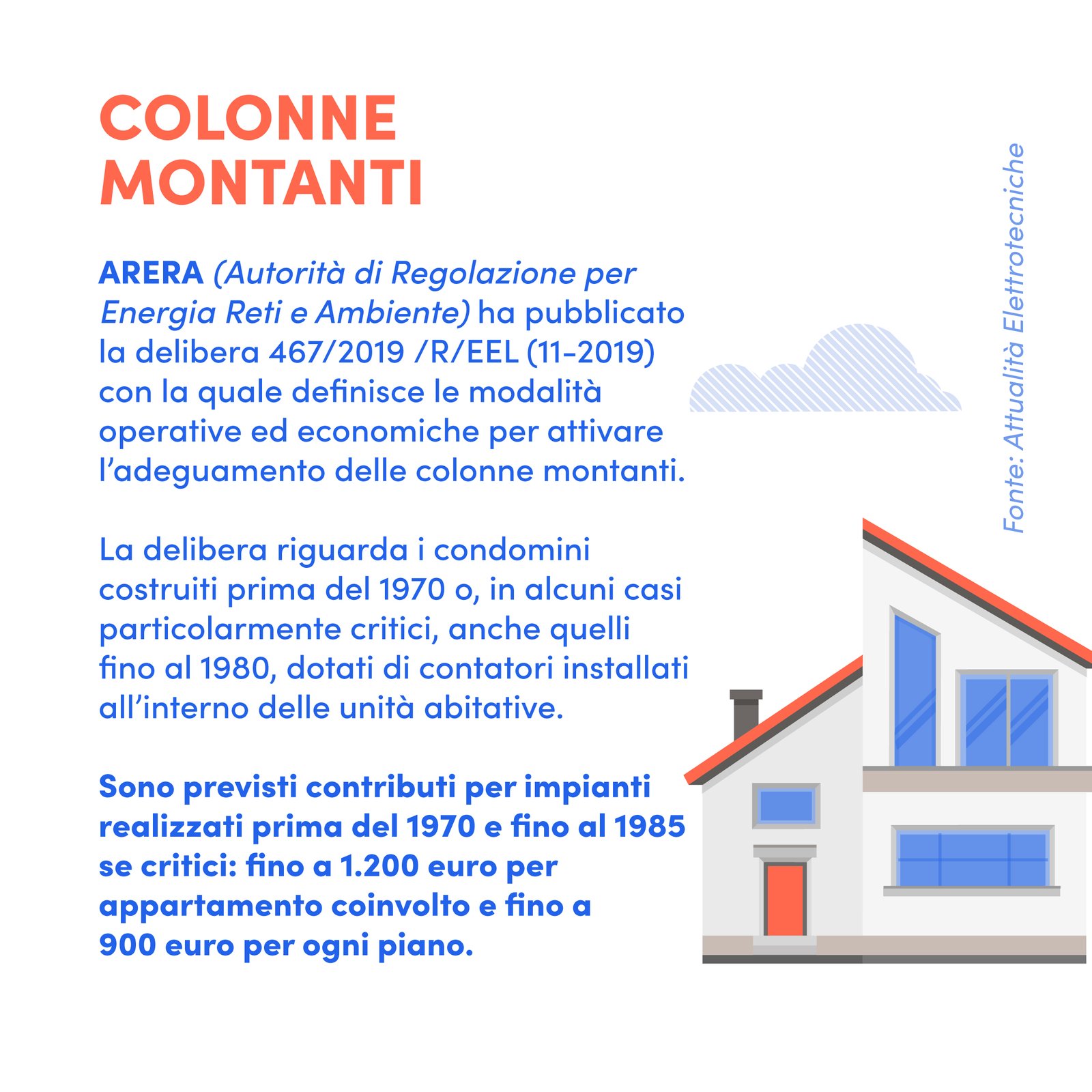 Sono diversi anni che, nei tavoli dell’autorità e dei distributori, si discute il tema dell’ammodernamento dei montanti elettrici nei condomini. È indubbio che le esigenze dei condomini sono mutate a causa della maggior presenza di apparecchi energivori quali, ad esempio, i sistemi condizionamento dell’aria, i piani cottura ad induzione, le pompe di calore e, ultimamente, i sistemi di ricarica dei veicoli elettrici. È facilmente intuibile che i montanti progettati ed installati negli anni 60 e 70 erano stati pensati per esigenze di consumo di gran lunga inferiori e pertanto non sono più adeguati.