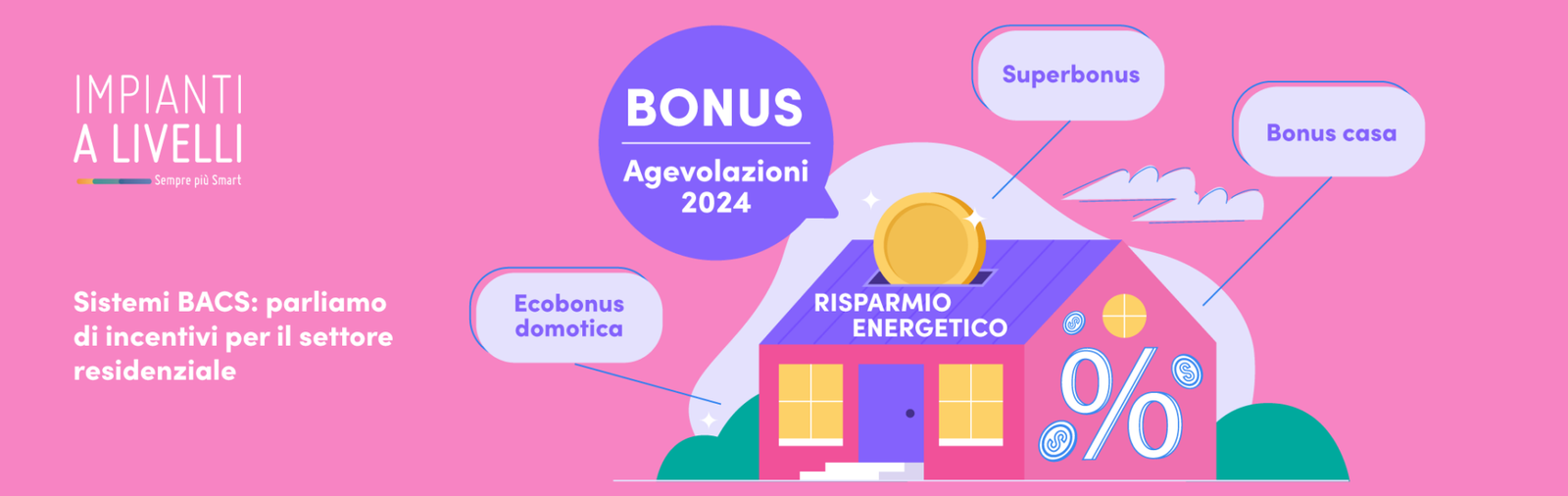 Ancora vigente, anche se con limitazioni decrescenti ogni anno, il cosiddetto superbonus (ex 110%), versione 2024, che prevede, tra l’altro, l’agevolazione di interventi di efficientamento energetico, trainanti o trainati. Per queste agevolazioni i BACS sono ancillari alle installazioni di impianti eseguite. Il tetto di spesa è, al momento attuale, di 96.000 euro, spalmabile in 10 anni.